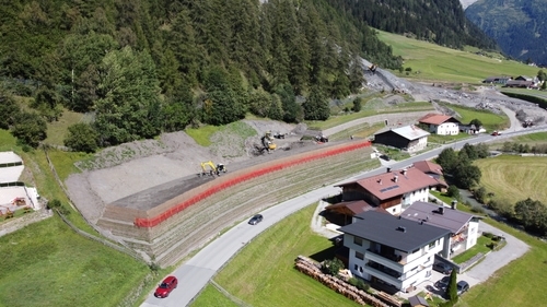 Aus diesem Grund hat sich das Land Tirol gemeinsam mit der Wildbach- und Lawinenverbauung dazu entschieden ein mehrstufiges Gesamtkonzept zum Schutz der Bevölkerung umzusetzen. Mehrere Schutzdämme wurden mit bewehrter Erde geplant und umgesetzt.